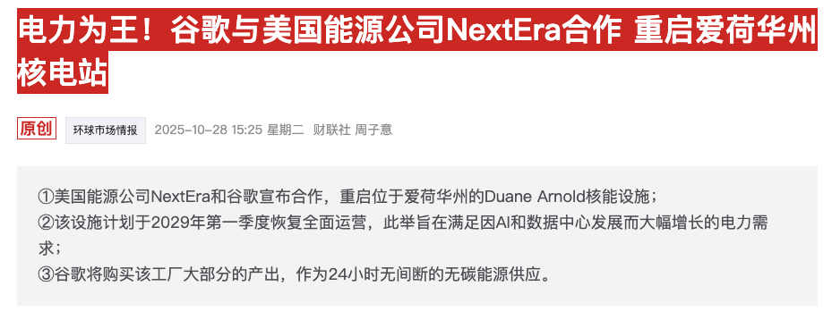 在公告中,新纪元能源宣布与谷歌云达成“长期能源和技术合作关系”的重大扩展。双方将合作开发数个“吉瓦”级的数据中心园区并配套建设发电与容量设施。