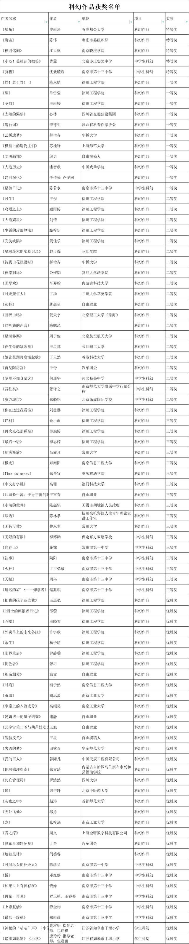 附获奖名单