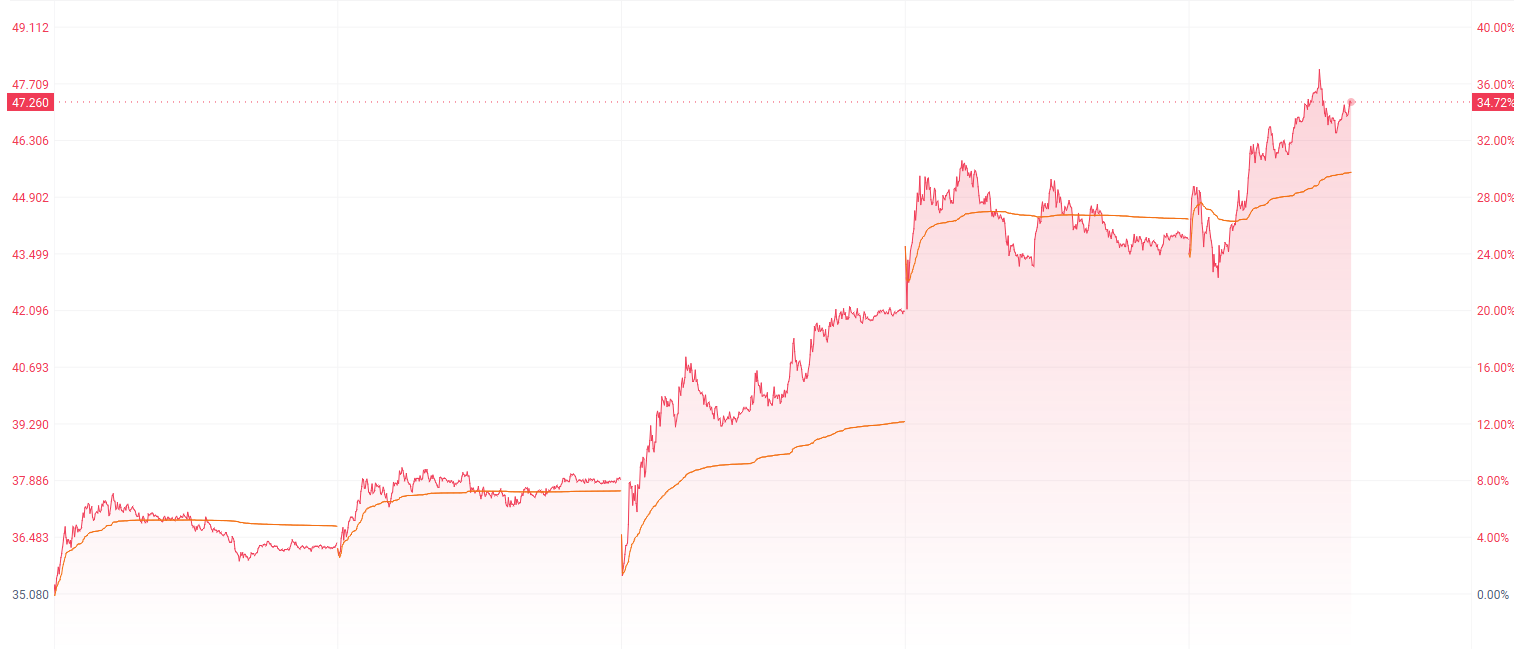 值得注意的是,该股周内累计涨幅达到34.72%。