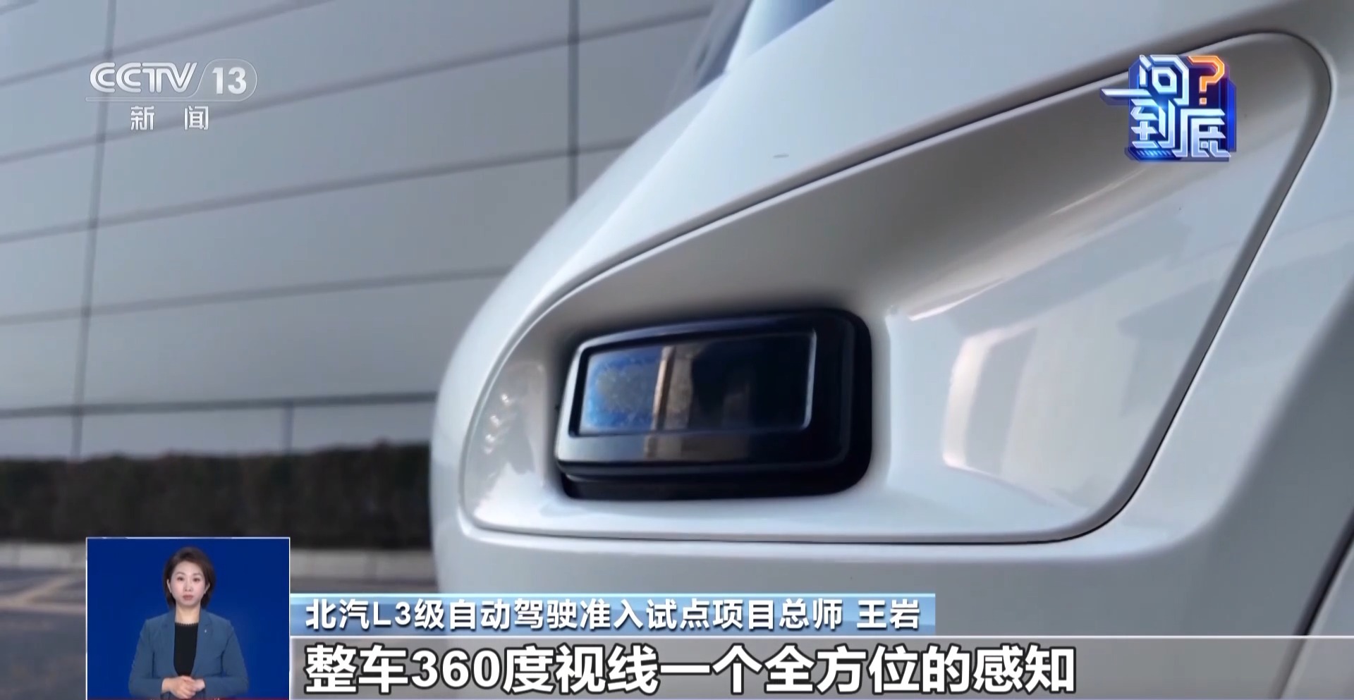 北汽L3级自动驾驶准入试点项目总师 王岩:这些传感器都是前装量产的状态,三颗激光雷达,十几颗摄像头,车身周围还有很多超声波雷达。整车360度视线,一个全方位的感知,来实时探测车身周围的风险。