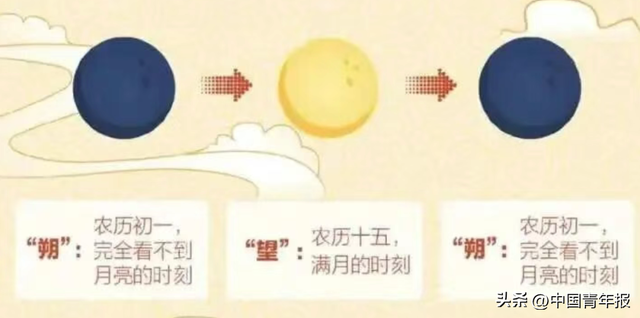“朔”所在日为初一,是人们完全看不到月亮的时刻;“望”所在日为十五,就是满月的时刻。