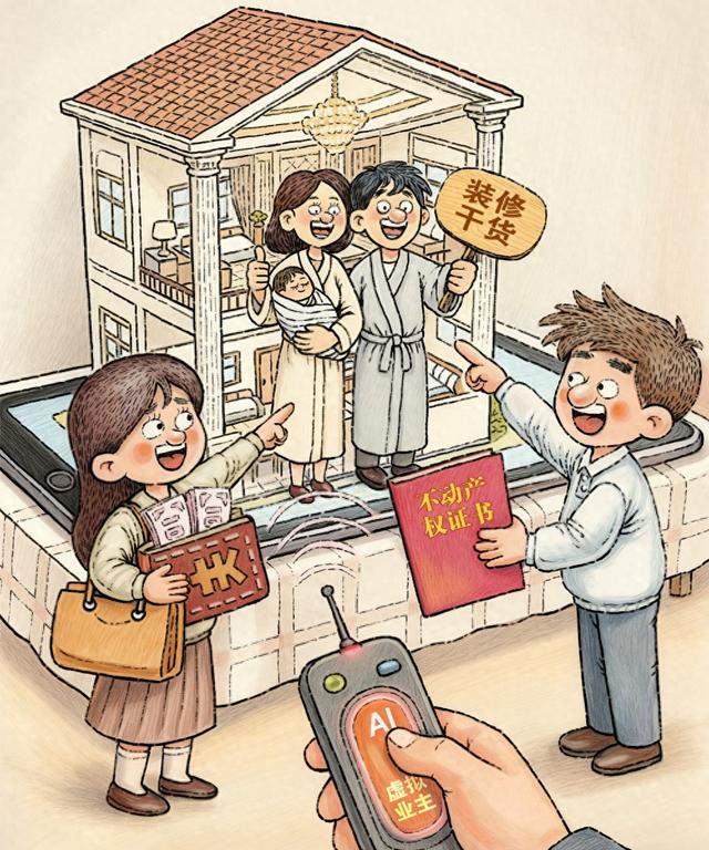 一些装修公司用AI生成“神仙夫妻”站在新家门口的图片,营造真实入住的氛围,以此来获客。这种宣传营销手段成本低,但明明用了AI却不做标注,透支的是消费者的信任。