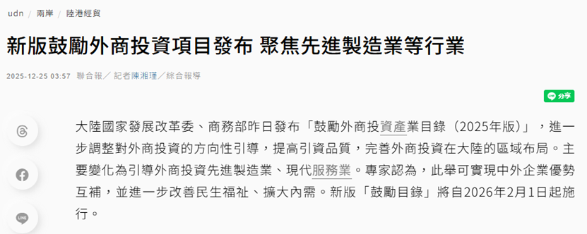 联合新闻网发文称,此举可实现中外企业优势互补,并进一步改善民生福祉、扩大内需。