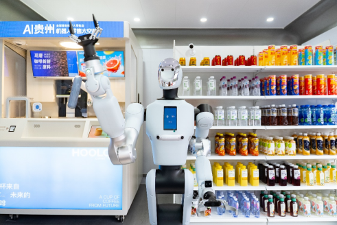 而舱内的“AI 咖啡大师”,则为贵阳咖啡爱好者带来了意外之喜。它并非简单的自动冲泡设备,而是以精密数据与核心算法为驱动,能精准复刻人类咖啡师的冲泡手法、水温和时间控制,确保每一杯出品都稳定呈现出手冲咖啡的醇香与层次。“我每天都要喝咖啡,没想到机器人做的咖啡味道也这么地道。”一位资深咖啡爱好者点赞道。这一突破,让贵阳丰富的 “咖啡地图””上,首次出现了由具身智能机器人全流程制作的品质咖啡,让消费者在享受便捷的同时,也能品尝到科技赋予的专业温度。“AI机器人店长”主理高效零售,“AI 咖啡大师”专攻品质饮品 ,二者的完美协作,不仅展现了人工智能在生活服务场景中的深度应用,更为市民带来了前所未有的智慧消费体验。一位老年体验者感慨道:“从没见过这样的高科技,现在连买咖啡都能这么智能,时代真是进步了。”