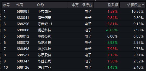 【科创芯片50ETF标的指数前十大成分股】