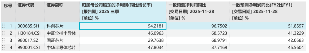 科创芯片50ETF(588750)标的指数2025年前三季度净利润增速高达94%,2025年全年预计归母净利润增速高达97%,大幅领先于同类,成长性更强!