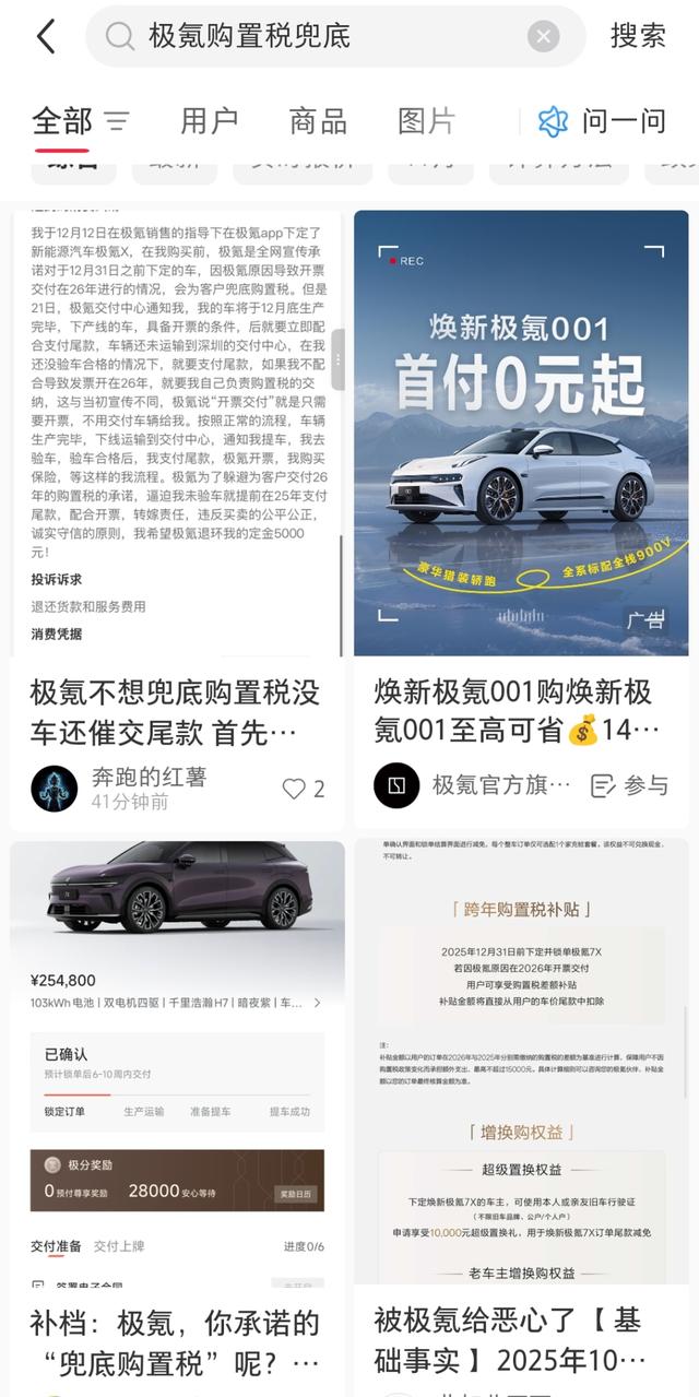 社交媒体平台上关于极氪“购置税兜底”的投诉