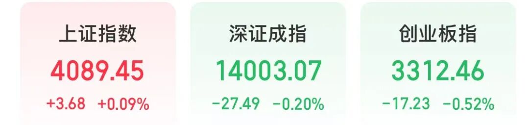 截至上午收盘,上证指数上涨0.09%,深证成指下跌0.2%,创业板指下跌0.52%。
