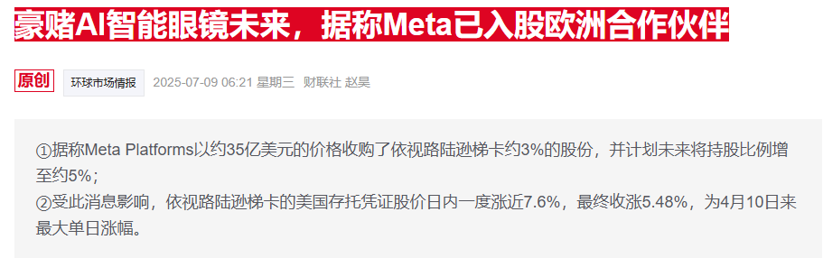 围绕产量的讨论反映出双方关系的进一步加深。去年,Meta收购了依视路陆逊梯卡约3%的股份,从而更深入地接触其制造经验和零售网络。