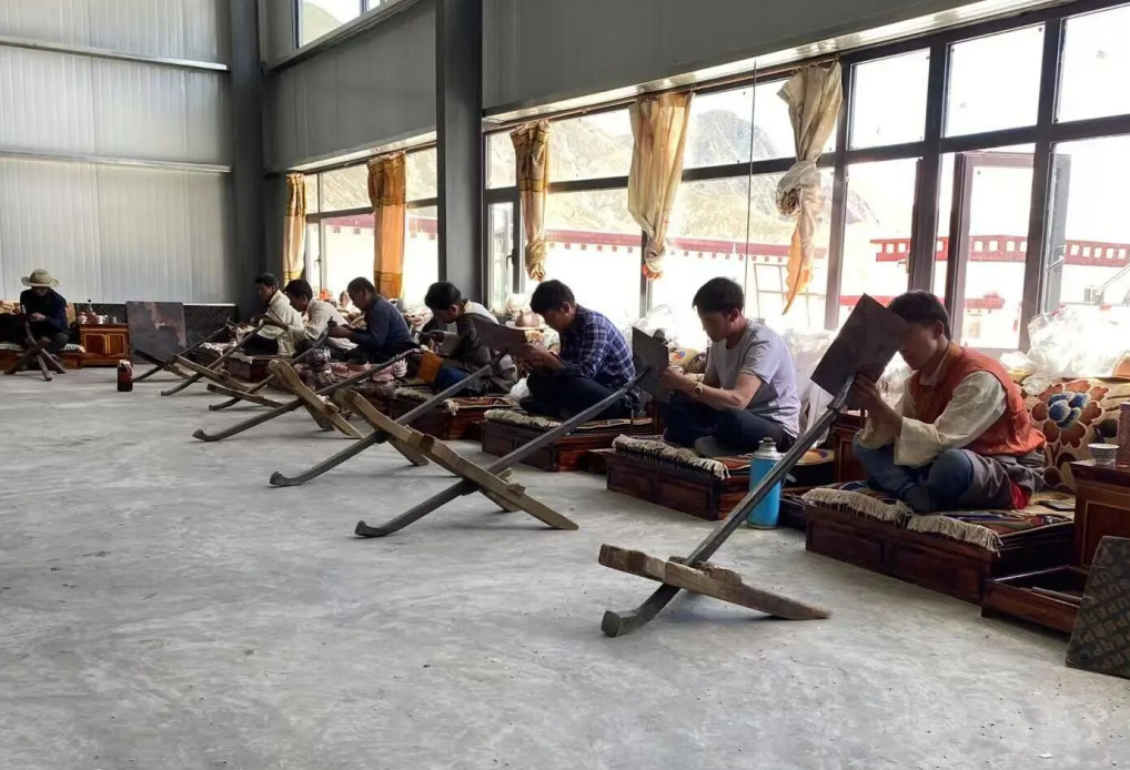 徒弟洛桑群培是传承成果的见证者。“我在孜东铜器工作有二十年了,在这期间一方面是学到了技术,另一方面实现了家门口就业。”