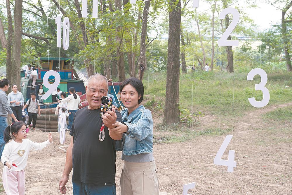 在上湾咖啡屋边的父女俩即兴拍了一段视频,河滩上的一些小点缀,让游客们在自然中感到更有趣味。