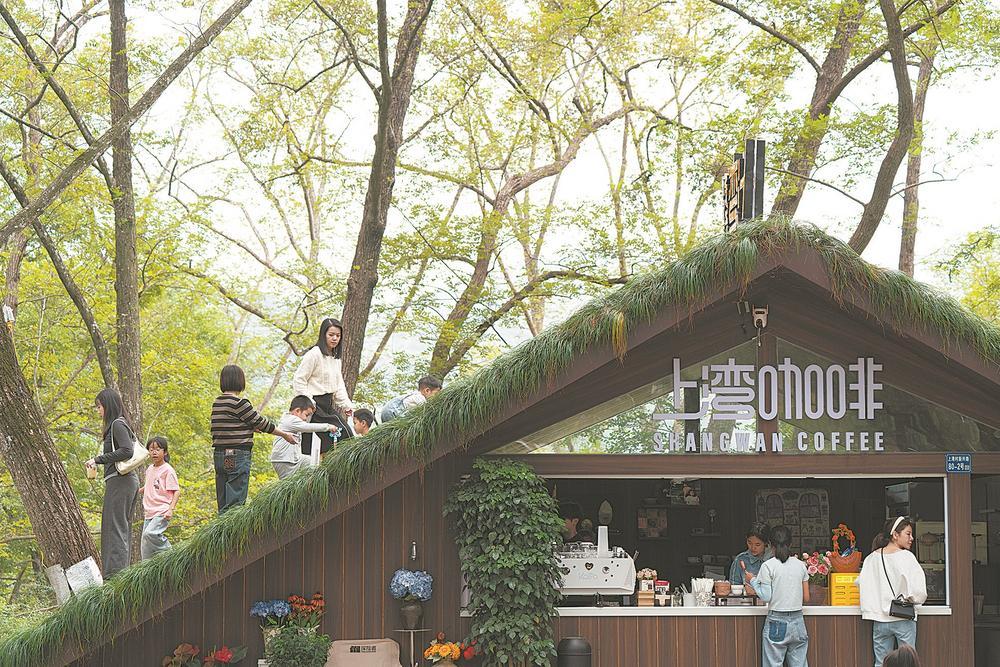 有了“廉咖”的经验,2025年年中,父女俩合计再开一家村咖,好让老吴在“正是闯的年纪”有点事干。廉村几公里外的上湾村,父女俩又在一片荒草萋萋的溪畔树林里投资建起了“上湾咖啡”。“廉咖”的影响力也蔓延至此,并带旺了乡村休闲经济。一到周末,游客的汽车都排到了村口。