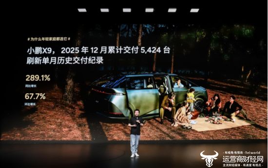 在MPV市场整体增长乏力、传统商务车型份额萎缩的背景下,小鹏X9逆势上扬,成为MPV市场的销量黑马。2025年12月,小鹏X9交付量5,424台,同比增速289.1%。值得关注的是,小鹏X9超级增程个人用户交付量近八成,领先同级竞品约35个百分点,不仅登顶高端MPV个人用户交付量榜首,更斩获下半年香 港MPV销量冠军,成为中国家用MPV的首选,还夺得2025年12月印尼纯电MPV销量冠军,加速推动高端MPV市场格局重塑。