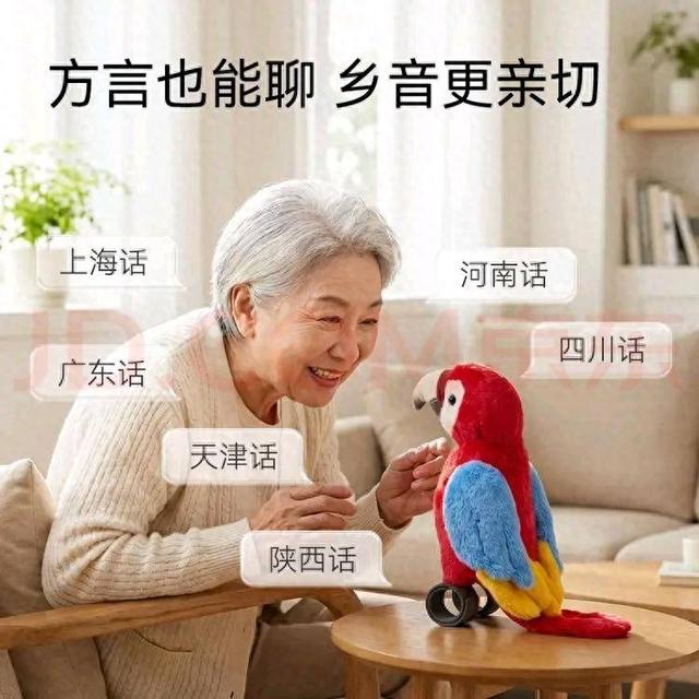 老人玩具长啥样?记者搜索发现,这种名叫“唠唠鹦”的老人AI玩具售价只要一百多元,模样就是一只毛绒绒的鹦鹉玩具,它可以说天津话、四川话、河南话、广东话、上海话……还能告诉你什么东西吃了对血压有好处、什么肉最补、几点睡就算熬夜了。据介绍,这是专为银发人群设计的,既懂方言,也懂怎么养生,数据库中还内置了海量戏曲、评书等深受老年人喜爱的内容,让他们的生活多些回应与陪伴。除此之外,这款AI玩具还具备紧急呼救、京东健康服务联动及子女日志同步等多重守护功能。技术人员介绍说,此次全新上线的AI玩具,依托京东 JoyInside 的 AI 技术能力及超级供应链优势,针对不同年龄段用户的互动和陪伴需求进行了独特设计和开发。