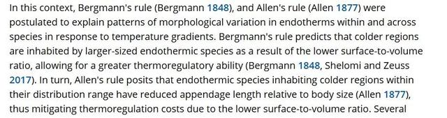 常被用于解释格陵兰人体征的伯格曼法则和艾伦法则