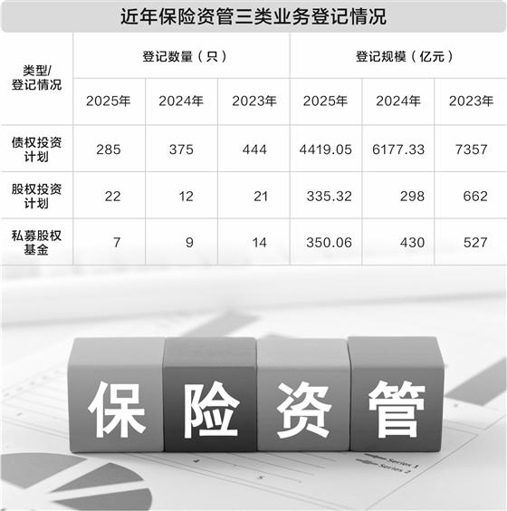 记者近日独家获悉的官方数据显示,2025年,保险资管机构共登记债权投资计划、股权投资计划和保险私募股权基金314只,登记规模5104.43亿元,数量、规模分别同比减少20.71%、26.08%。