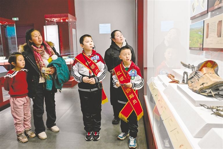 1月19日,呼伦贝尔市海拉尔区新海小学的“红领巾讲解员”在呼伦贝尔市历史博物馆内向游客市民提供讲解服务。为深化课外实践教育,传承历史文化,推广国家通用语言文字,当地组织中小学生开展红领巾志愿服务活动,让他们走进博物馆、纪念馆和社区等场所,利用寒假期间,以青少年视角传递家乡底蕴,助力游客市民读懂历史,让孩子们在实践中不断增强文化自信,度过快乐而有意义的假期。
