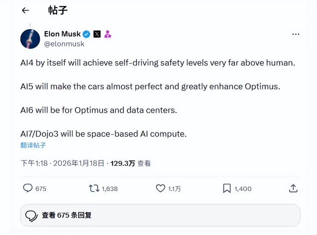 在最新帖子中,马斯克写道:“AI7/Dojo3将用于太空人工智能计算。”这一规划呼应了他去年提出的一个颠覆性的愿景:将AI计算中心部署到太空。