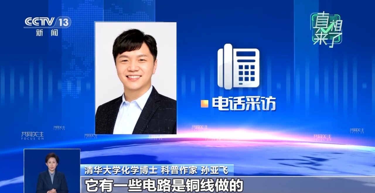 清华大学化学博士、科普作家 孙亚飞:在一些电子产品当中,有一些电路是铜线做的,或者是铜制的接触面去做的。铜在长时间使用之后,受到水还有二氧化碳的影响,会发生氧化,变成不导电的铜氧化物或者是铜绿那样的一些物质,这就会导致它的性能发生下降。比如原本它是需要接触通电的,现在变成不通电了。为了减少这样的错误发生,就得寻找到一种金属,能够不让铜发生氧化。比较理想的一种金属就是黄金,因为它在常规的条件下不会发生腐蚀,而且用量不需要很多。