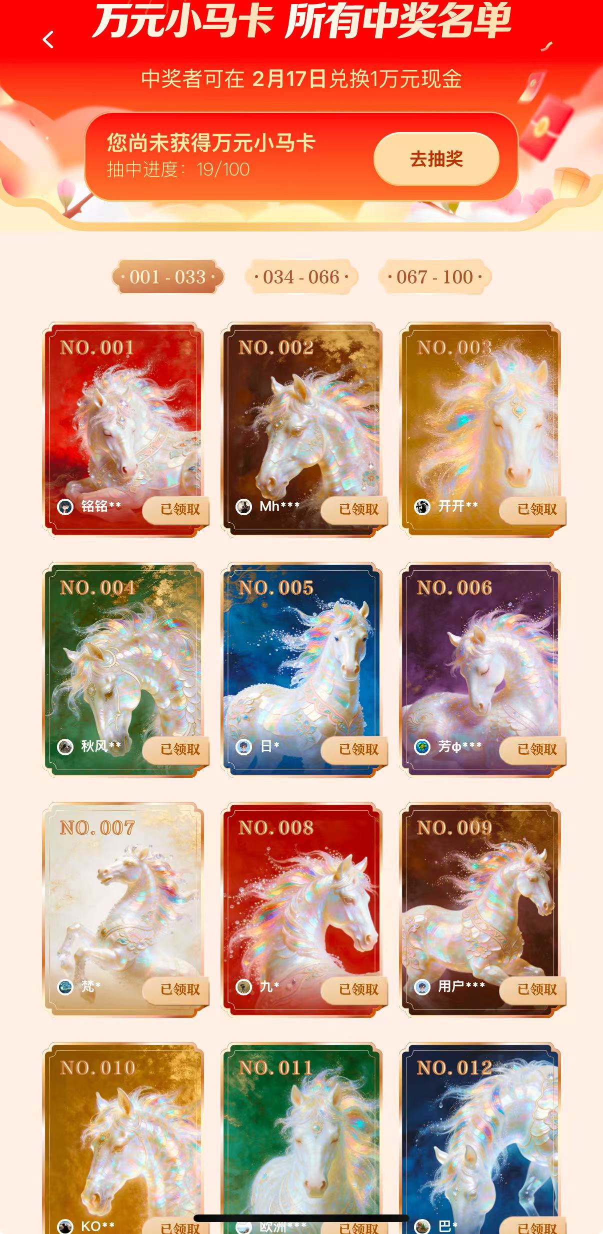 2月1日0点,腾讯“上元宝,分10亿”活动正式开启。一夜之间超过10张万元小马卡被“翻牌”。截至当日23时,已有19人抽取到小马卡。