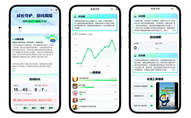 基于“AI游戏周报”的数据呈现与智能解读,家长能够更清晰地比对、研判游戏行为是否健康,从过去的“凭感觉管”走向“有依据管”。