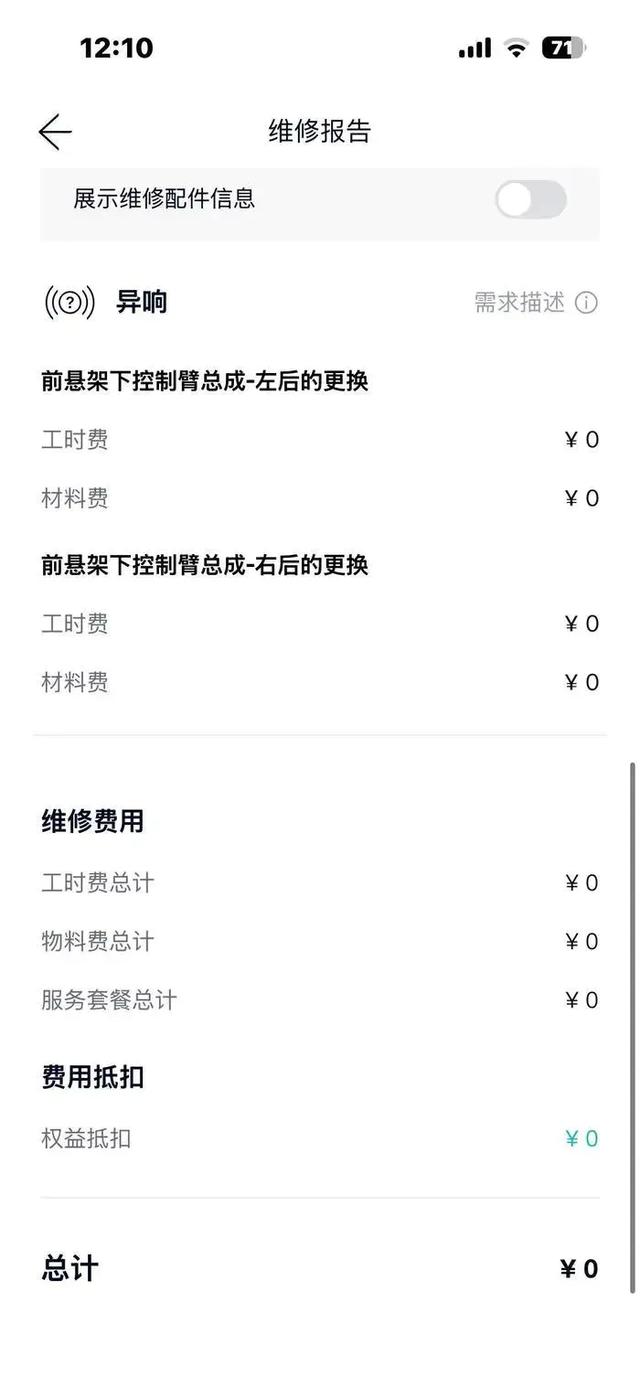 康先生购买的是2024款的蔚来ES6.落地价格在33万左右。据他描述,自己是在2024年7月于苏州的4S店下的订单,8月在南京提的车。根据康先生提供的维修记录,他分别在2024年12月、2025年10月、2026年1月对车辆的左右后前悬架下控制臂总成和右后减振器总成进行了维修和更换。