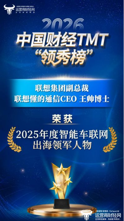 2026中国财经TMT领秀榜盛典成功举办,盛典汇聚行业精英,国务院国资委新闻中心副主任张义豪致辞,运营商财经网多位负责人分享行业洞察,揭晓“2025中国财经TMT领秀榜”获奖名单。凭借其在人工智能与全球智能连接领域的技术拓新与卓越成果,联想懂的通信获评“2025年度AI融合创新企业”,联想集团副总裁、联想懂的通信CEO王帅博士荣膺“2025年度智能车联网出海领军人物”。