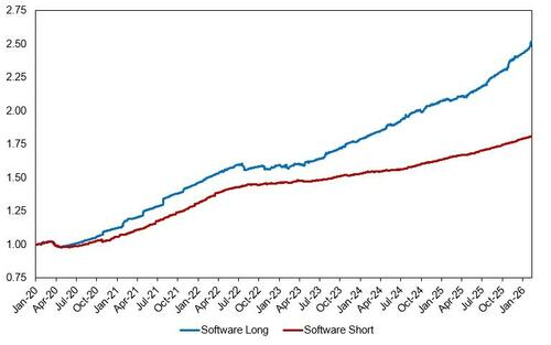 然而,高盛在最新发布的报告中,或许已“破解”了这个市场“首要难题”——他们目前正试图通过对冲策略划清“优质”与“劣质”软件股的界限,既保持对软件行业的“敞口”,又对面临“生存威胁”的企业设置保护伞。