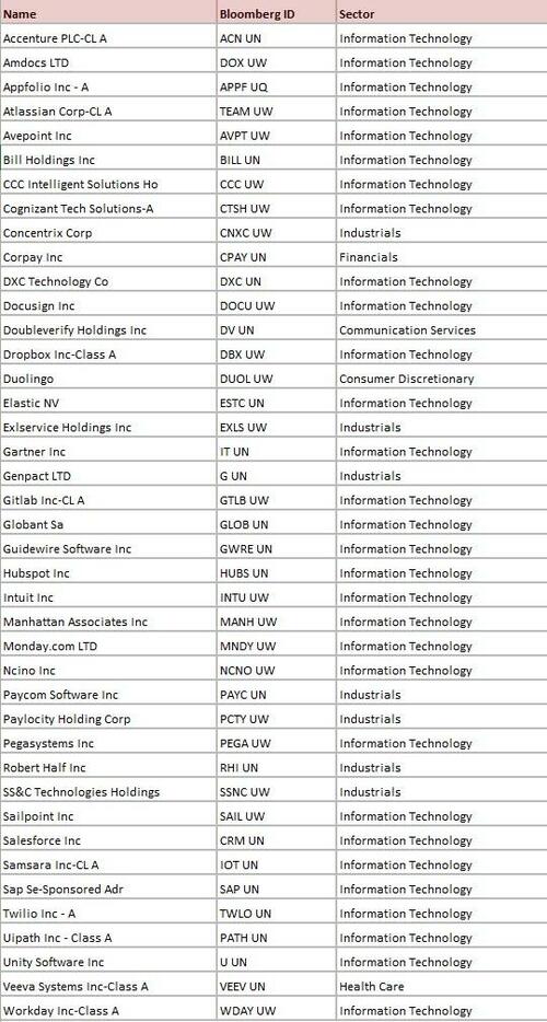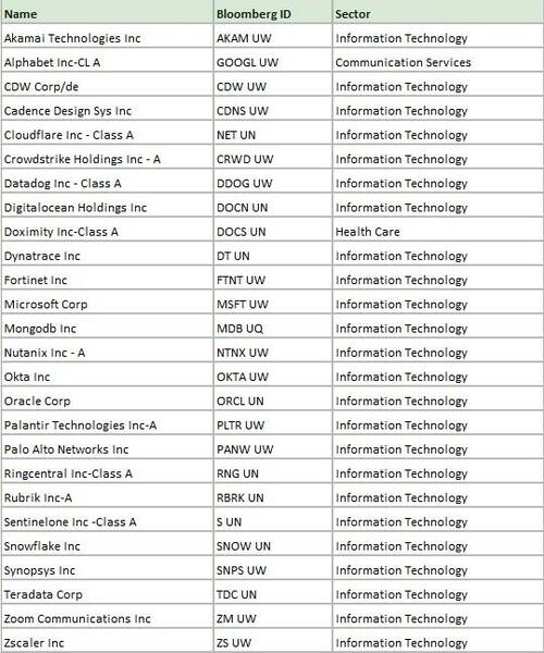 周四,高盛分析师Faris Mourad详细介绍了这项新型软件股对冲策略(GSPUSFTX)的运作机制,其组成如下: