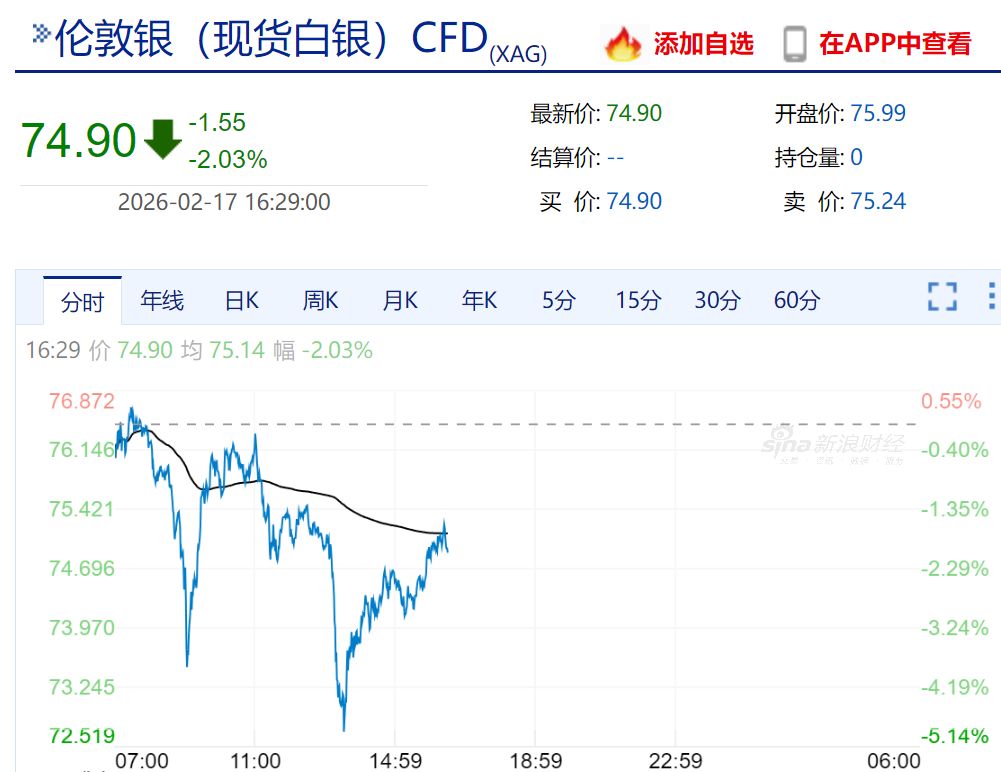 2月17日,现货黄金、白银价格盘中突然大幅跳水,白银一度暴跌约5%,随后跌幅收窄;现货黄金跌破4900美元/盎司,截至发稿报4920.07美元/盎司。