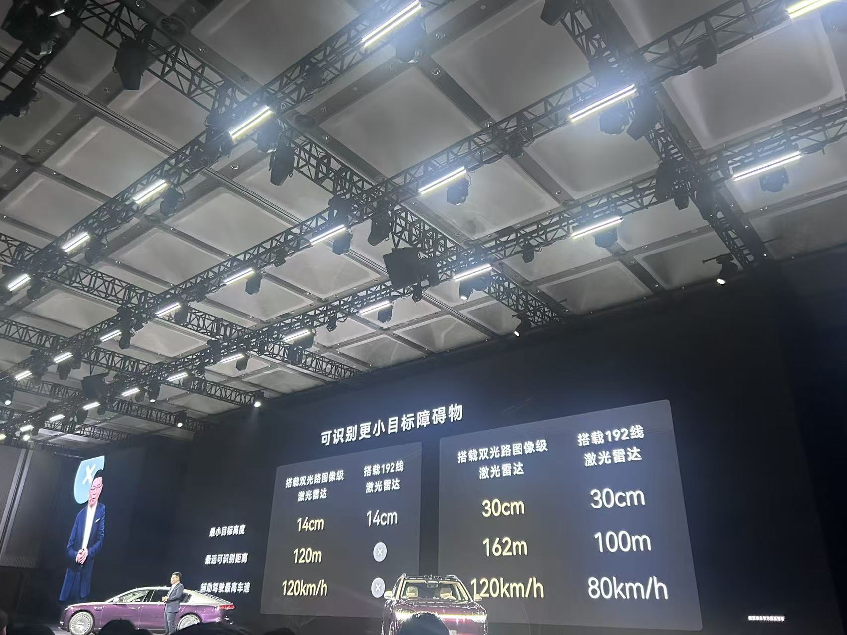 余承东在发布会现场介绍,在路面上最小目标高度只有30厘米的情况下,192线激光雷达的最远识别距离为100米,辅助驾驶最高车速为80km/h,而新一代双光路图像级激光雷达的最远识别距离达到了162米,辅助驾驶最高车速为120km/h。