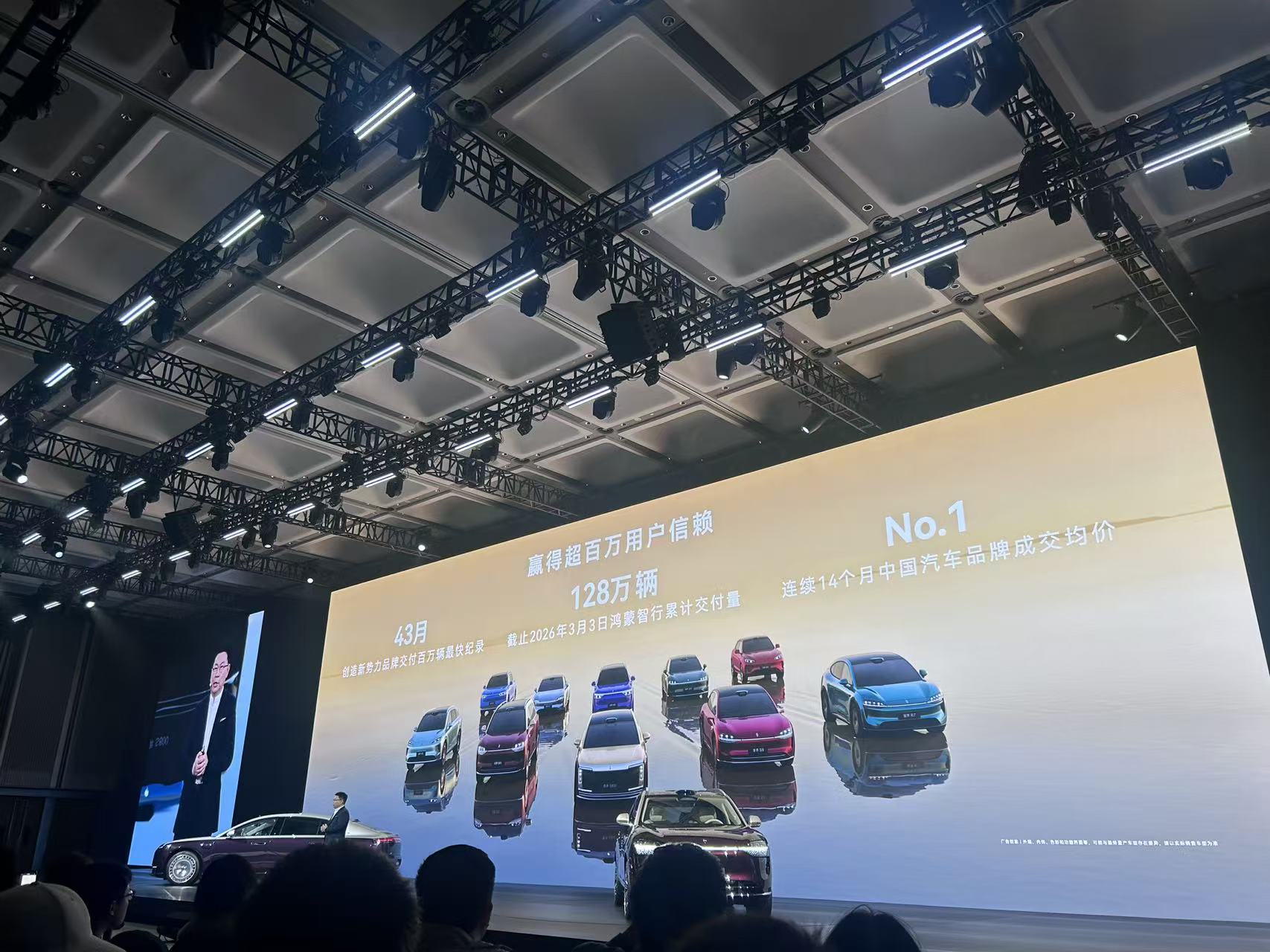华为常务董事、终端BG董事长余承东在发布会上透露,截至2026年3月3日,鸿蒙智行累计交付量达128万辆。其中,问界M9全系累计交付突破28万辆;尊界S800上市9个月累计交付量超15000辆,且连续5个月稳居百万豪车销量冠军。