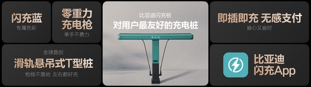 为实现第二代刀片电池的闪充速度,比亚迪还全新开发了闪充桩,单枪充电功率做到了1500千瓦。闪充桩采用“滑轨悬吊式T型桩”设计,让线拉着枪,手感轻巧,并且枪线保持悬空,避免缠绕更干净,还可以让用户轻松左右滑动,充电更灵活。