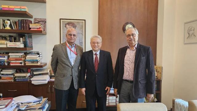 访印期间,阎学通教授分别访问中国驻印度大使馆和中国驻孟买总领事馆,与中国驻印度大使徐飞洪、驻孟买总领事秦杰会面。在与徐飞洪大使的会谈中,双方围绕中印双边关系、人文交流等议题进行沟通。在孟买总领事馆,阎学通教授与馆内人员就当前大国竞争与国际形势进行座谈。