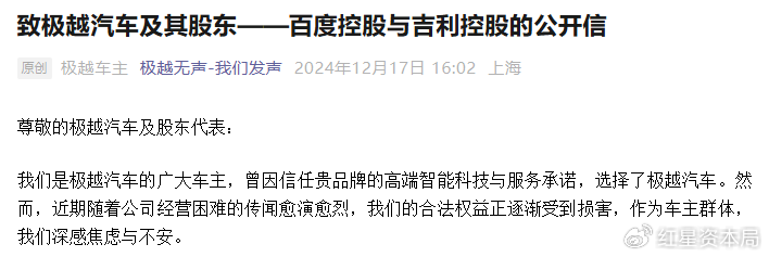 不过由于关键零配件缺货严重影响维修进度,车机软件bug频发严重威胁行车安全,极越车主在2025年曾发布致百度与吉利的联合公开信。