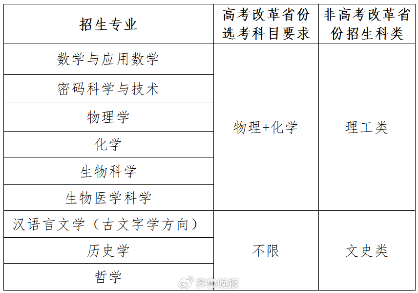 2026年山东大学强基计划招生专业在原有8个专业基础上,新增了密码科学与技术专业。2025年招生专业为数学与应用数学、物理学、化学、生物科学、生物医学科学、汉语言文学(古文字学方向)、历史学、哲学8个专业。