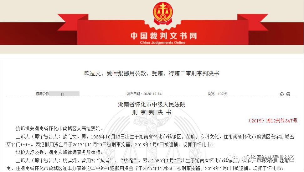 最后,二审法院判决,欧某文获刑10年半、冯某获刑6年半、姚某焜获刑13年并罚款50万、周某获刑6年并罚款20万、吴某勇获刑7年并罚款50万。同时,法院责令五人退还农业银行金海支行被挪用的1000万,继续追缴姚某焜、周某二人受贿的200万,并表示此判决为终审判决。