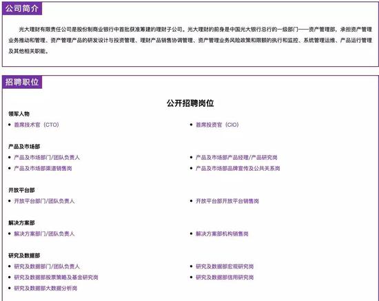 光大理财此前启动大规模招聘