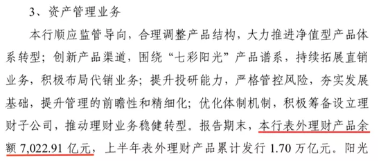 截至2019年6月末,光大银行表外理财产品余额7022.91亿元。