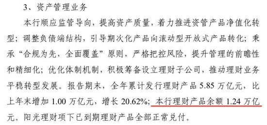 截至2018年末,光大银行理财产品余额1.24万亿元。