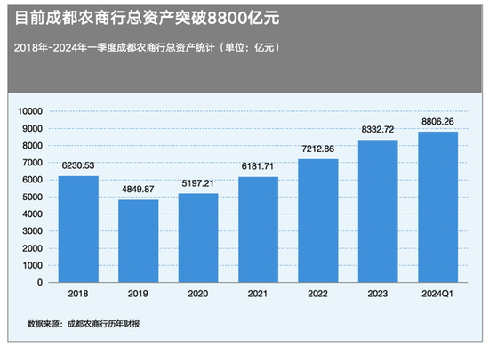 截至2023年末,成都农商行资产规模达8332.72亿元,同比增长15.53%,位列农商行梯队第五。今年一季度,该项指标继续乘势而上,截至3月末,其总资产已进一步增至8806.26亿元。