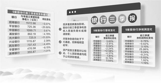今年前三个季度,尽管股份行零售业务承压、息差持续下行,但从经营业绩来看,9家A股上市股份行的营业收入或净利润仍出现了不少积极因素。
