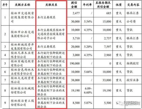 2019年,桂林银行与9家关联方发生重大关联交易,其中居然有6家与该行时任副行长卿毅新有关。作为时任副行长的卿毅新,其近亲属控制的6家企业,居然从桂林银行获得了大笔授信。