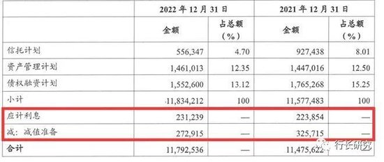 端倪出现在这笔巨额减值准备上。看上图,2022年减值准备27.2915亿元,2021年减值准备32.5715亿元,连续两年都超过了当年的应计利息。
