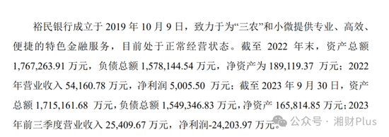 另据正邦科技2024年3月披露的关联交易公告,截至2023年9月末,江西裕民银行资产总额为171.52亿元,负债总额为154.93亿元,净资产为16.59亿元,前三季度实现营业收入2.54亿元,净利润-2.42亿元。
