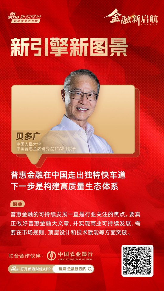 在此背景下,新浪财经推出《金融新启航·新引擎新图景》专题,邀请金融业界专家和学者,围绕“十五五”新周期下的金融变革展开前瞻性研讨,本期对话中国人民大学中国普惠金融研究院(CAFI)院长贝多广。贝多广表示,过去十几年,普惠金融在中国走出了一条独特而快速的发展之路。