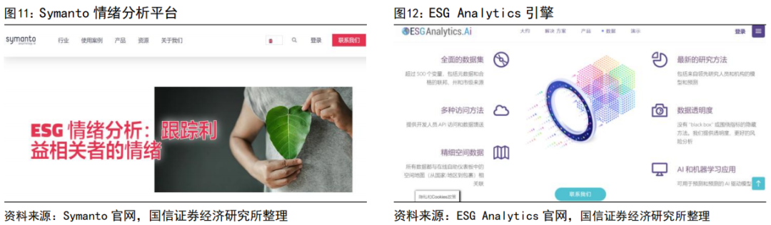 AI赋能的ESG情绪分析通过自然语言处理(NLP)技术,能够高效分析社交媒体、新闻报道等非结构化数据,精准衡量公众对ESG议题的态度和情绪。例如,Symanto利用先进的NLP技术,能够分析数千条社交媒体评论,识别特定ESG议题的情绪趋势,为投资者和企业提供关键洞察。这种精准的情绪分析工具已成为ESG投研中不可或缺的一部分,推动企业和投资者在可持续发展道路上更加明智地应对市场动态。Floodlight(原名ESG Analytics) 通过其先进的人工智能(AI)引擎进行全球公司的情感分析,这个引擎专门针对环境、社会和治理(ESG)相关的数据进行优化。该工具能够从大量公开信息中提取出对公司ESG表现的公众情感,从而为投资者和企业管理层提供关于其品牌和策略在公众眼中接受度的重要洞察。