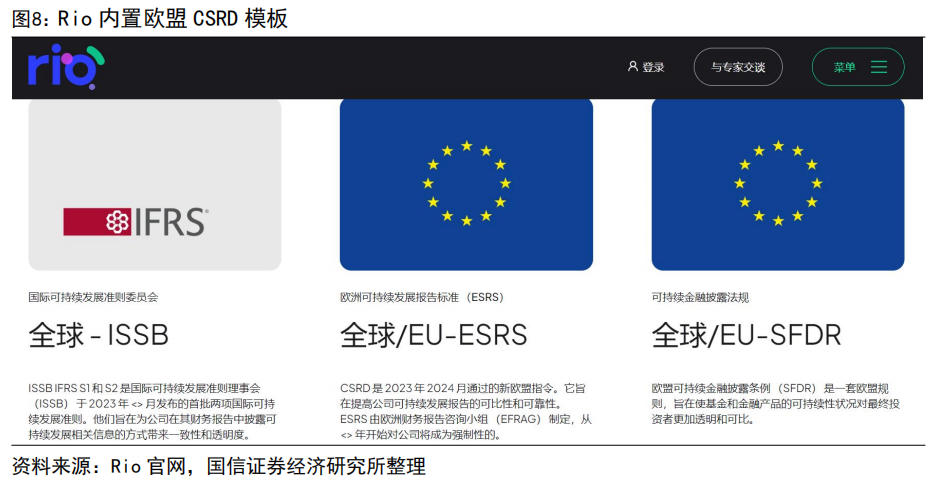 在合规方面,AI技术显著提升效率并降低成本。例如,Rio通过AI识别企业优先披露的ESG议题(如高污染行业的范围排放),并内置欧盟CSRD模板,自动生成合规文件。这使得企业能够更高效地管理ESG数据,确保其报告与国际标准对齐,同时满足监管要求。Rio AI为Kier PLC、Crestbridge Group、Crawford&Company保险、British Council、Augean、Arrow Global等多家公司提供管理指导。SFDR和SDR等产品标签制度推动资产管理行业在可持续性报告方面取得成果和变革。Rio AI帮助企业了解其可持续性绩效和投资组合覆盖情况,并提供相关法规的指导。顾问团队由经验丰富的专家组成,能够为复杂投资组合的可持续性整合提供专业建议。