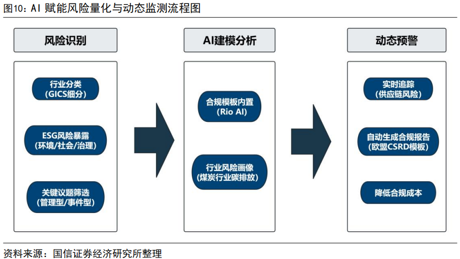 AI技术通过数据整合与清洗、风险量化与动态监测、公众情绪与品牌声誉管理以及投资组合优化等核心应用场景,全面赋能ESG投研。AI利用自然语言处理和自动化爬虫技术,将碎片化的ESG数据转化为结构化信息,显著提升数据处理效率;通过机器学习模型实现ESG风险的量化和动态监测,帮助企业主动预警并降低合规成本;借助情感分析技术,将公众情绪和品牌声誉从模糊感知转变为精准量化,为投资者提供关键情绪洞察;并根据投资者偏好和目标,提供个性化的投资组合构建方案,实现财务回报与环境及社会责任的平衡。