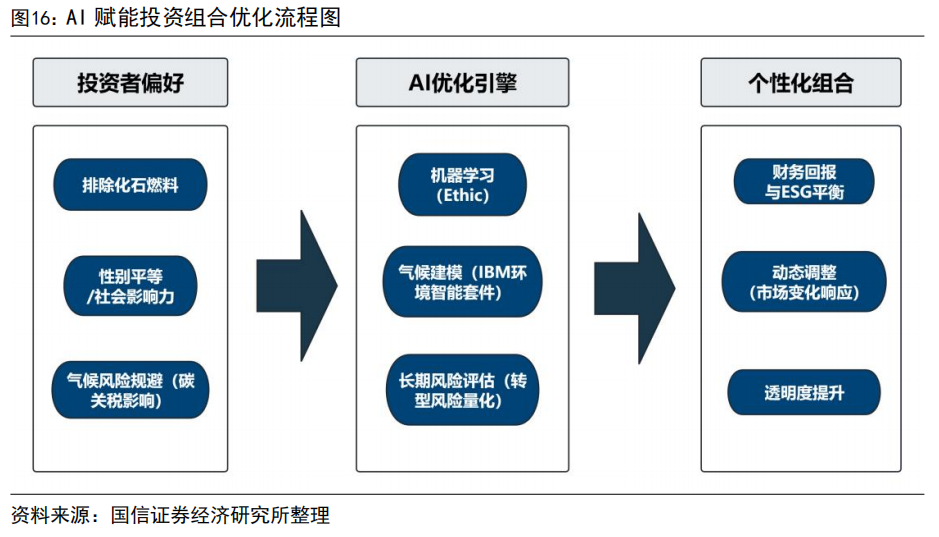 这些AI工具不仅提升了投资组合构建的效率,还将个性化组合构建时间大大缩短,同时帮助投资者规避气候相关资产减值,显著提升了长期收益的稳定性。通过AI赋能,投资组合优化从标准化迈向个性化,为投资者提供了更高效、更灵活且更具可持续性的投资选择。
